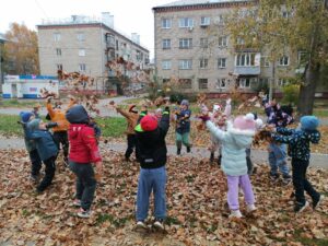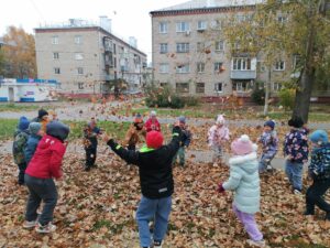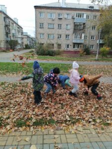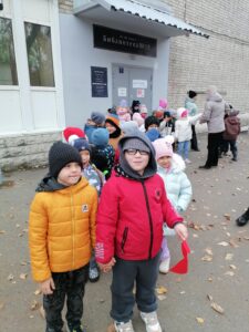 После библиотеки прошли по аллее на ул. Г. Исакова, где ребята полюбовались осенними деревьями, пошуршали листьями и сделали “листопад”. Экскурсия прошла интересно и познавательно.