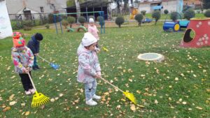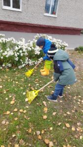 В один из погожих сентябрьских деньков, мы с ребятами на прогулке решили навести порядок на нашем участке. Все с радостью вооружились граблями, и работа закипела.