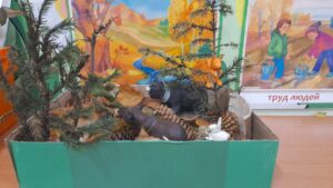 Макет Дикие животные в осеннем лесу. Он изготовлен для закрепления знаний детей о животных леса.