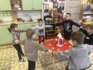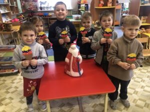 В нашей стране- России 18 ноября торжественно отмечается день рождения Деда Мороза. Считают, что в этот день в Великий Устюг приходит настоящая зима, ударяют первые морозы, снег уже не тает. Дед Мороз- это добрый волшебник, который приходит к детям зимой, приносит подарки и устраивает веселые праздники для детворы. Сегодня в нашей группе на тематическом занятии дети прослушали аудиосказку «Кто такой Дед Мороз?», поиграли в дидактические игры «Доскажи словечко», отгадывали загадки. Дети играли весело в подвижную игру «Сугроб» и « Два Мороза», водили каравай в честь дня рождения. А какой же день рождения и без подарков? В конце занятия дети сделали любимое лакомство для Деда Мороза- мороженое. День в детском саду прошёл насыщенно и увлекательно!