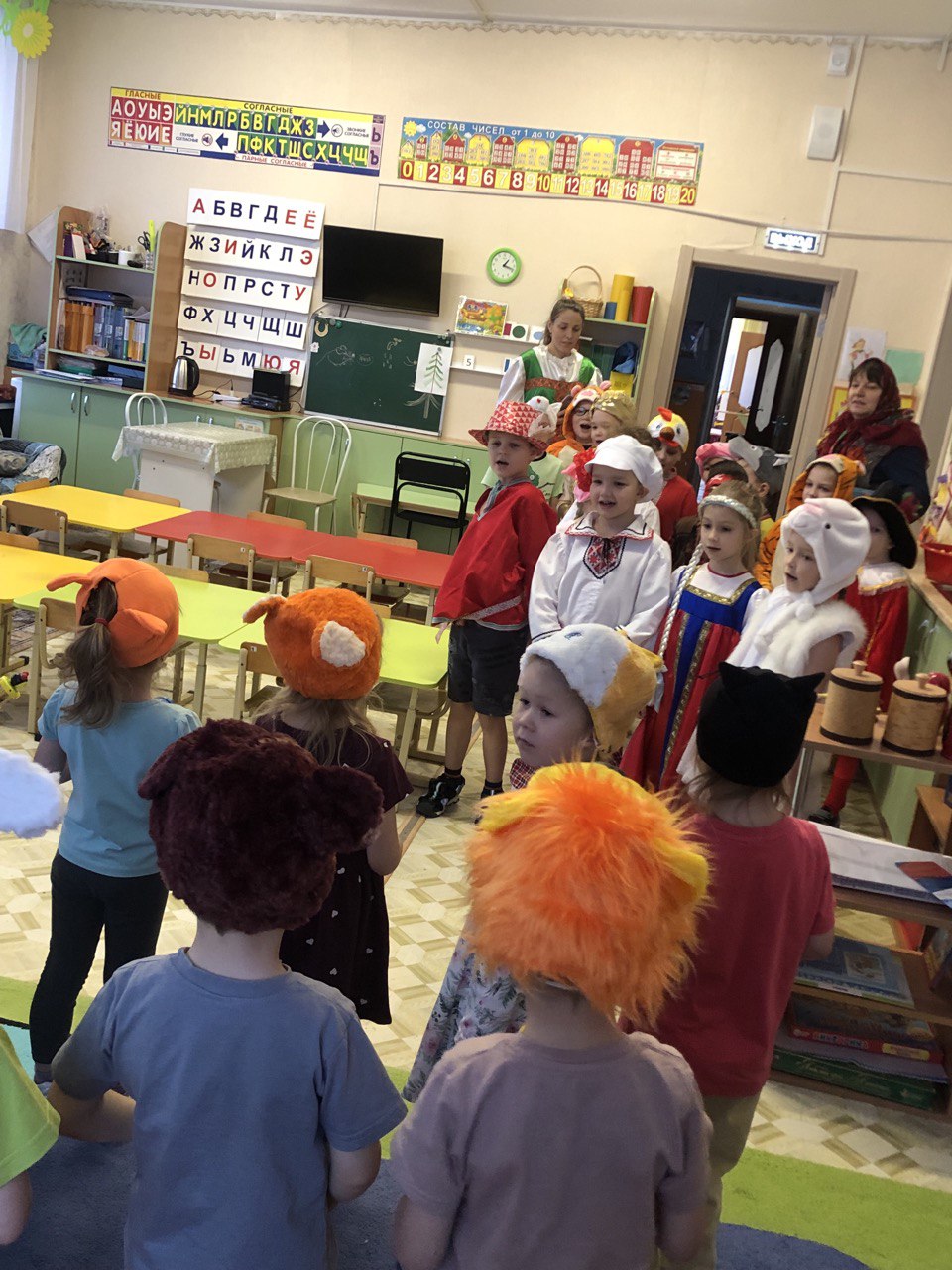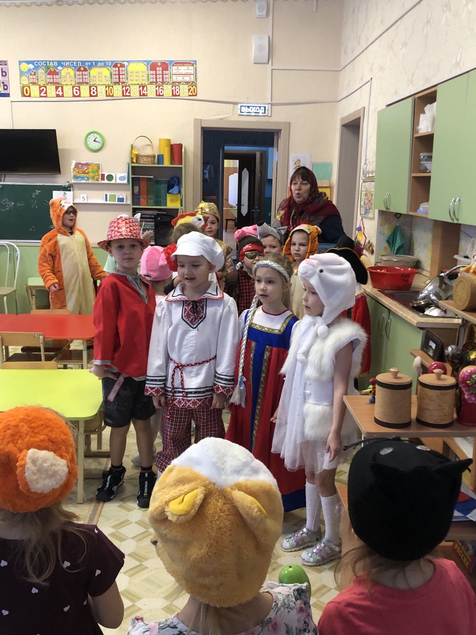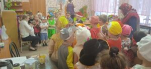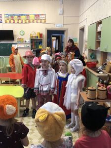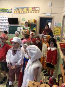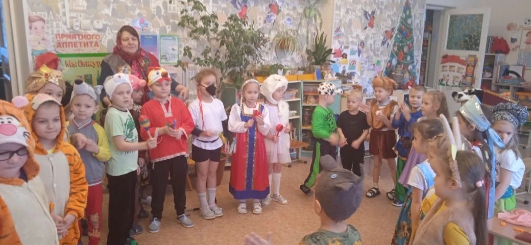 В нарядных костюмах, с песнями и закличками, с пожеланиями богатства и счастья ряженые обошли группы. Хозяева были щедры: угощали гостей сладостями.