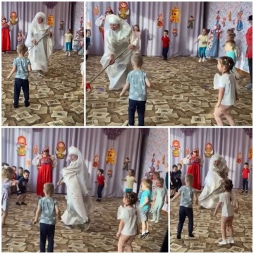 Дети играли с Зимой, водили хороводы. Баба Яга веселила детей и развлекала. Встретили, как на настоящей ярмарке Медведя. Провожали Зиму и встречали Весну.