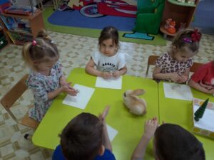 Занятие лепка ( коллективная) ” Зайчики на полянке” сайт2 марта, 2026 Наши занятия гр №7 Закреплять технические приемы лепки, передавать в работе характерные приметы зайчика. Поддерживать интерес к лепке. ← Развлечение к 23 февраля проводили с детьми и папами Конструирование из бумаги ” Божья коровка “ →