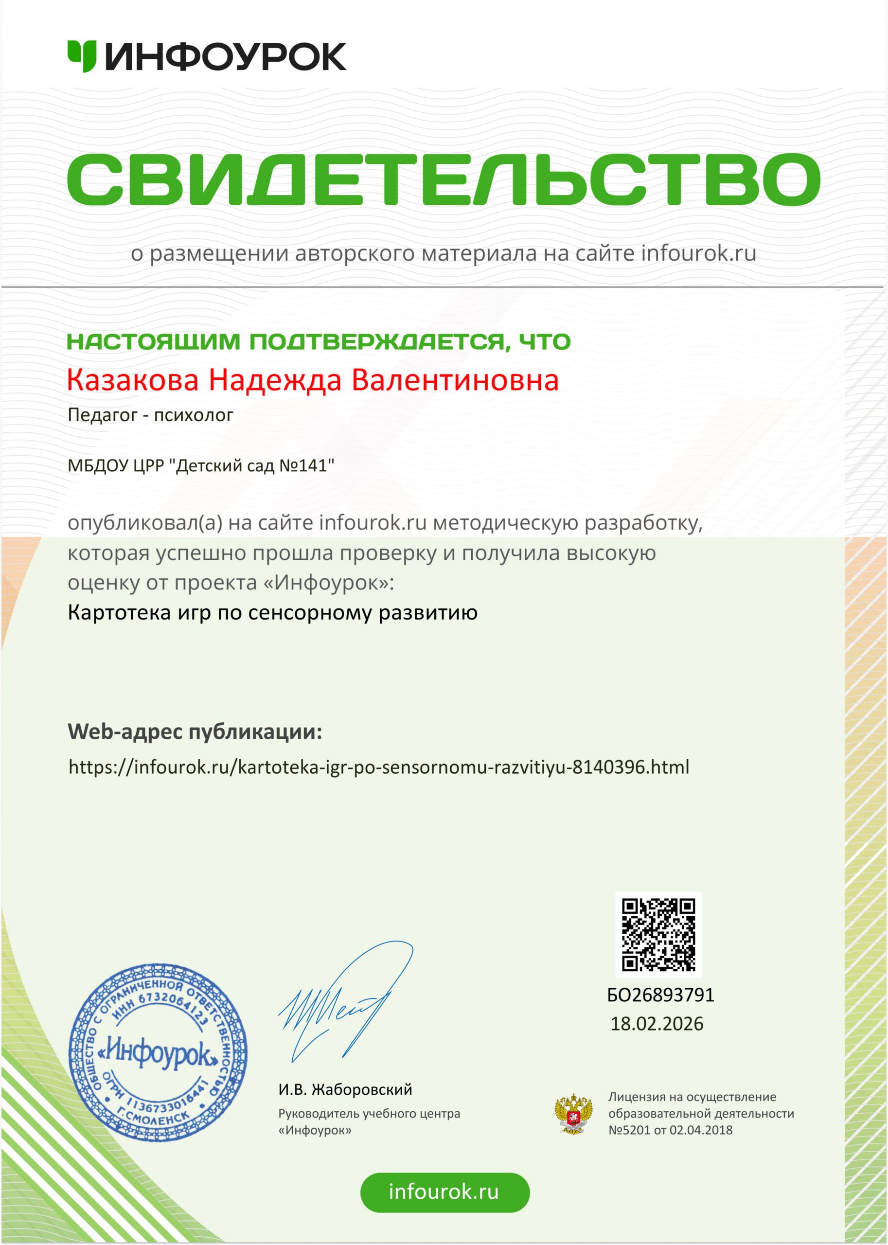 Страничка заведующего